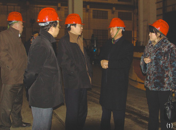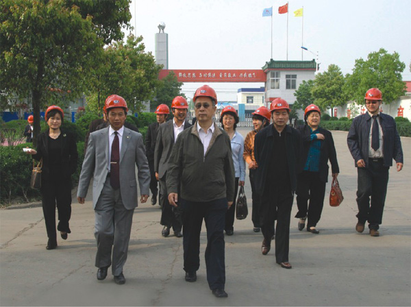 江蘇鵬飛集團總裁王家安的陪同下,中國建筑材料聯(lián)合會陳國慶副會長一行參觀公司生產(chǎn)基地